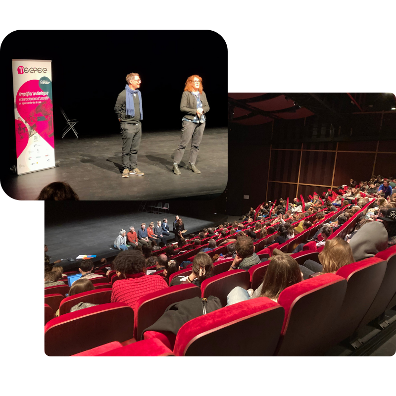 - [Retour sur] Séminaire Secondaire / supérieur - Arts et Sciences, savoirs, croyances et désinformation21 janvier 2026Le mercredi 21 janvier 2026, des enseignant·es du secondaire et du supérieur venant de toute la région Centre-Val de Loire se sont réuni·es à Tours, pour une journée consacrée aux liens entre savoirs, croyances et mécanismes de désinformation. Pensée comme un temps de rencontre, la journée a articulé une expérience artistique partagée le matin et des échanges de pratiques l’après-midi, afin d’explorer ce que produisent les démarches qui mobilisent arts, sciences et recherche.Organisé dans le cadre du label SAPS TEEPEE, l’événement était co-organisé avec le Rectorat et le soutien du Centre Dramatique National (CDN) de Tours. La matinée s’est tenue Salle Thélème, avant un déplacement à l’Atelier des projets pour la seconde partie de la journée.